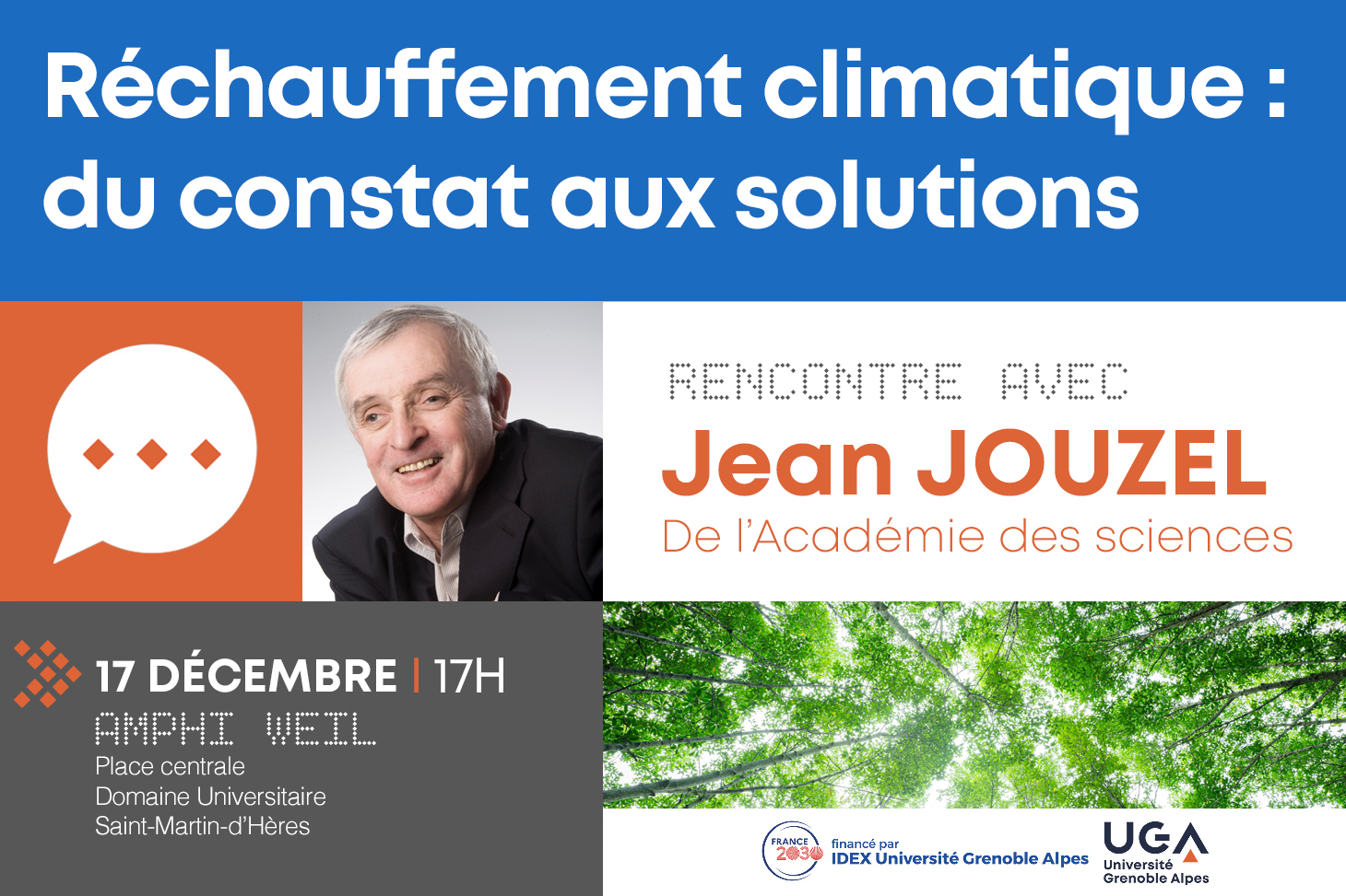 Dans le cadre du cycle « Conférences d’exception : faire connaissance », l’Université Grenoble Alpes accueille Jean Jouzel, célèbre climatologue français connu pour ces travaux en paléoclimatologie et au sein du GIEC