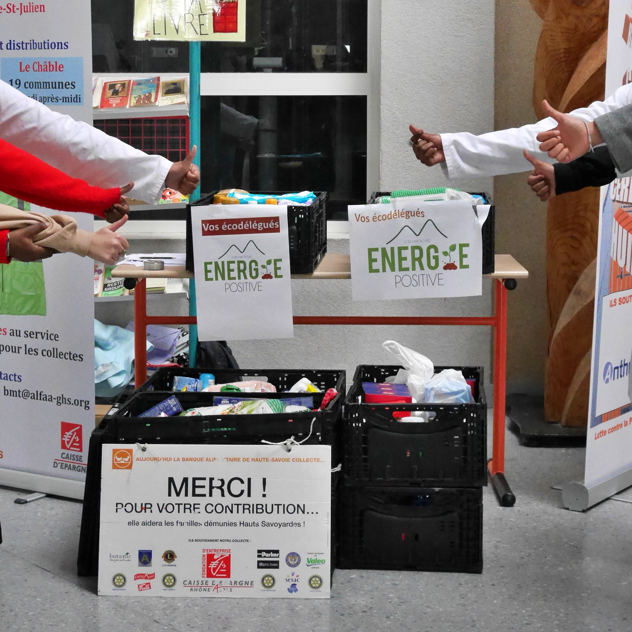 Avant la collecte, nous avons organisé des réunions pour bien cibler notre projet, obtenir les autorisations, créer des affiches et communiquer par tous les moyens possibles. Puis, pendant une semaine, nous nous sommes relayés pour occuper le stand de collecte durant les pauses et remplir petit à petit les caisses mises à notre disposition par la Banque Alimentaire. Un travail intensif pour notre équipe de 10 éco-délégués impliqués dans ce projet !