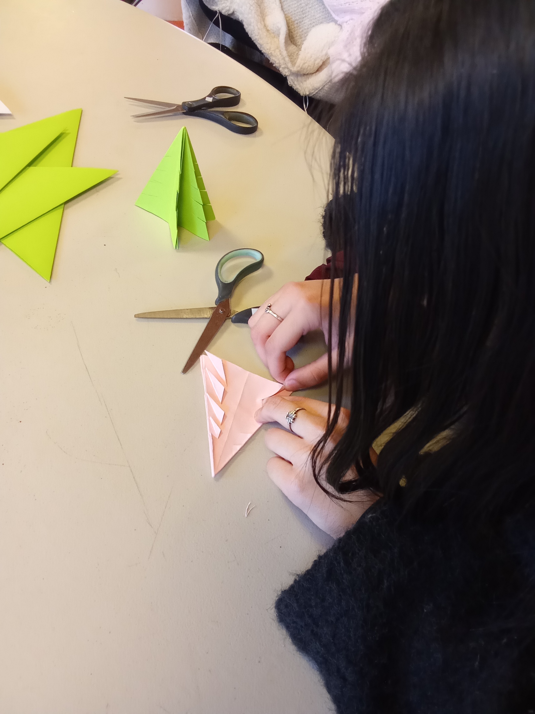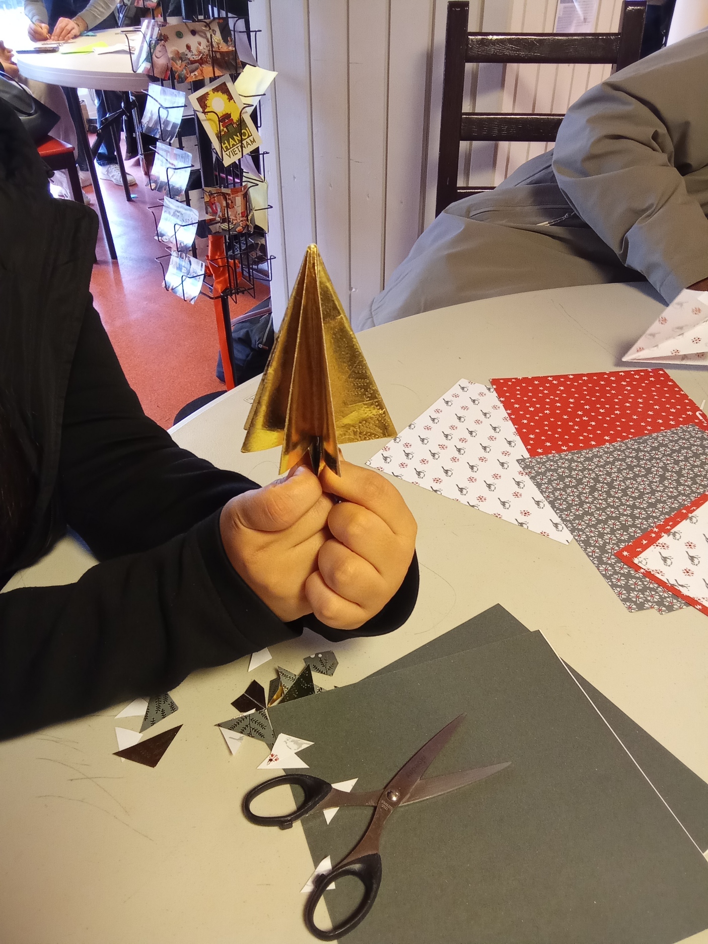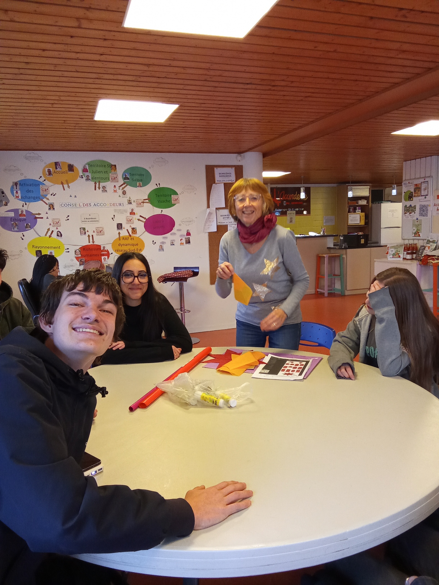 Un rendu pour un donné: les bénévoles et professionnels de l'Accorderie nous accordant de leur temps, les élèves de 1ST2S2 ont participé à la réalisation de décorations de table pour le repas de Noël prévu pour leurs usagers. Un grand merci aux personnes présentes qui ont initié les élèves à l'art de l'origami tout en partageant un goûter.